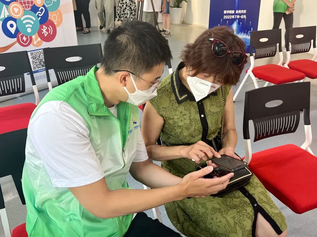 年轻的网络文明志愿者们从智能手机的基础使用、常用软件的具体操作等方面展开一对一、手把手教学,不仅帮助老年人掌握个人核酸码、行程码的生成,还指导他们用发放的数字生活体验金现场操作,体验网上购物、配药、叫车等生活必要服务。