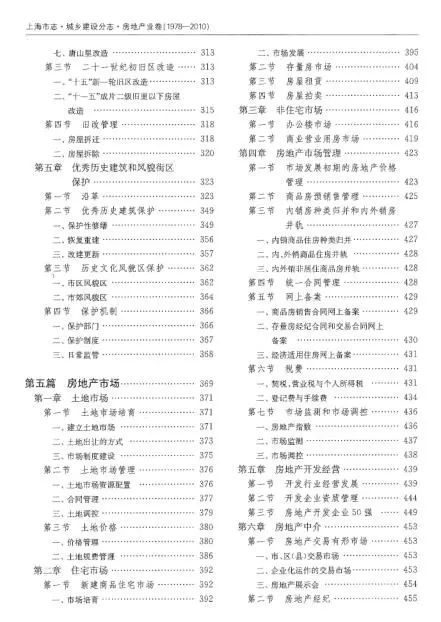 3、第五篇房地产市场,记述了1978年-2010年间上海房地产市场的兴起、发展的历程;