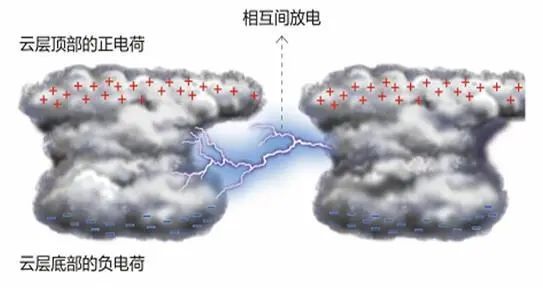 当大气中的正负电荷被分离,并在积雨云的不同部位积聚,云中就产生了电荷。云的上部以正电荷为主,下部以负电荷为主,不同极性的电荷区之间的电场增加到一定程度时,上部与下部之间就形成了一个电位差,产生放电,这就是生活中常见的雷电现象了。