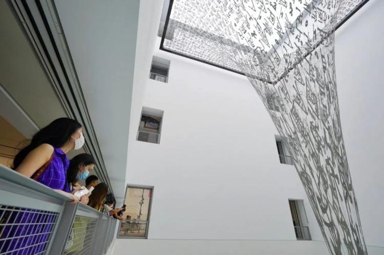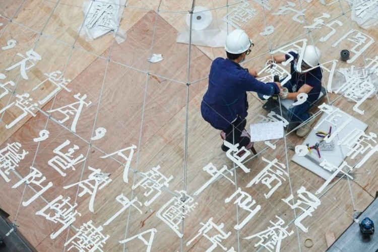 据悉,为了满足观众对“幕后艺术创作过程”的兴趣,浦东美术馆于7月1日刚刚恢复开放之时,就向观众展现了“引力剧场”布展全过程。一个多月来,随着数千个铝合金制造的“英文方块字”被逐一固定在漩涡状的巨大钢丝结构之上,作品的整体架构慢慢抬高,好似在空间中自然生长。