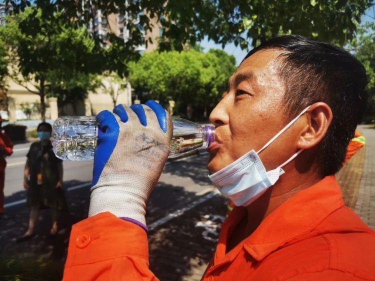养护工人李阴纪告诉记者,近段时间持续高温,“在外面工作没多久就是一身汗,每天喝水量也增加了。”不少养护人员随身带着2升装的水杯,但没一会就喝完了,遇上工作忙的时候根本没空回去装水。