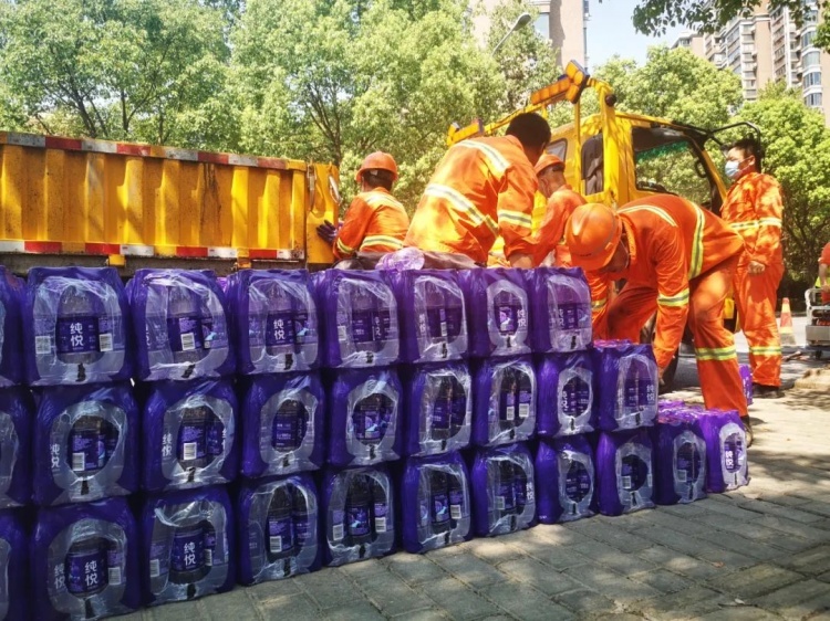“师傅,赶紧拿瓶水喝,补充一下水分。”来自上海申美的工作人员及时送上了一瓶瓶饮用水。这正是上海申美的“一瓶水接力”公益项目,为环卫工人、市政工人、交通警察等户外工作者以及防疫志愿者送上免费的饮用水。