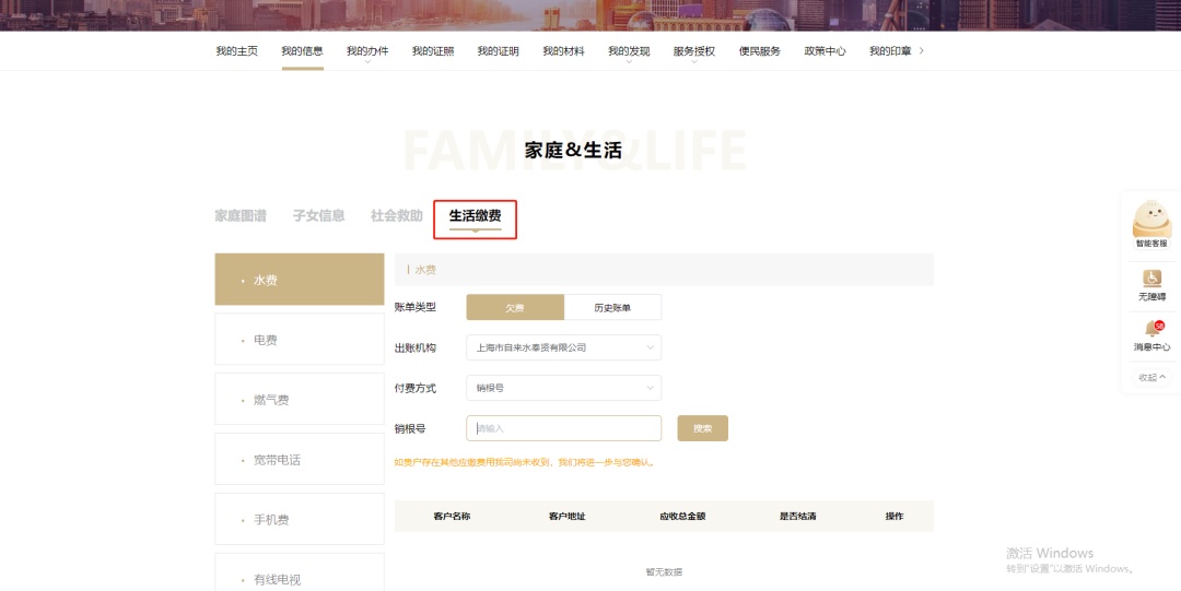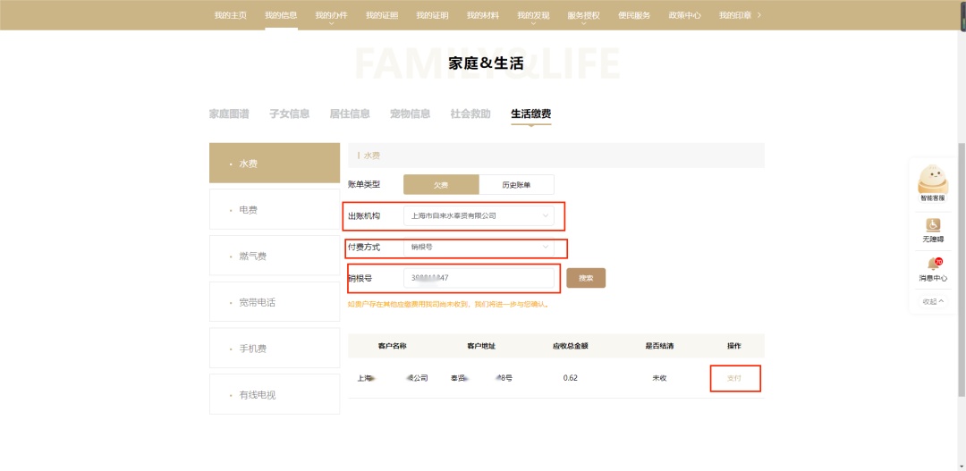 上水奉贤公司“一网通办”水费缴费功能已于2022年8月11日正式上线,用户登录“一网通办”网站后可以点击网页右上角的登录账号——“市民主页”——“家庭&生活”——“生活缴费”中实现水费实时缴费和历史账单查询。