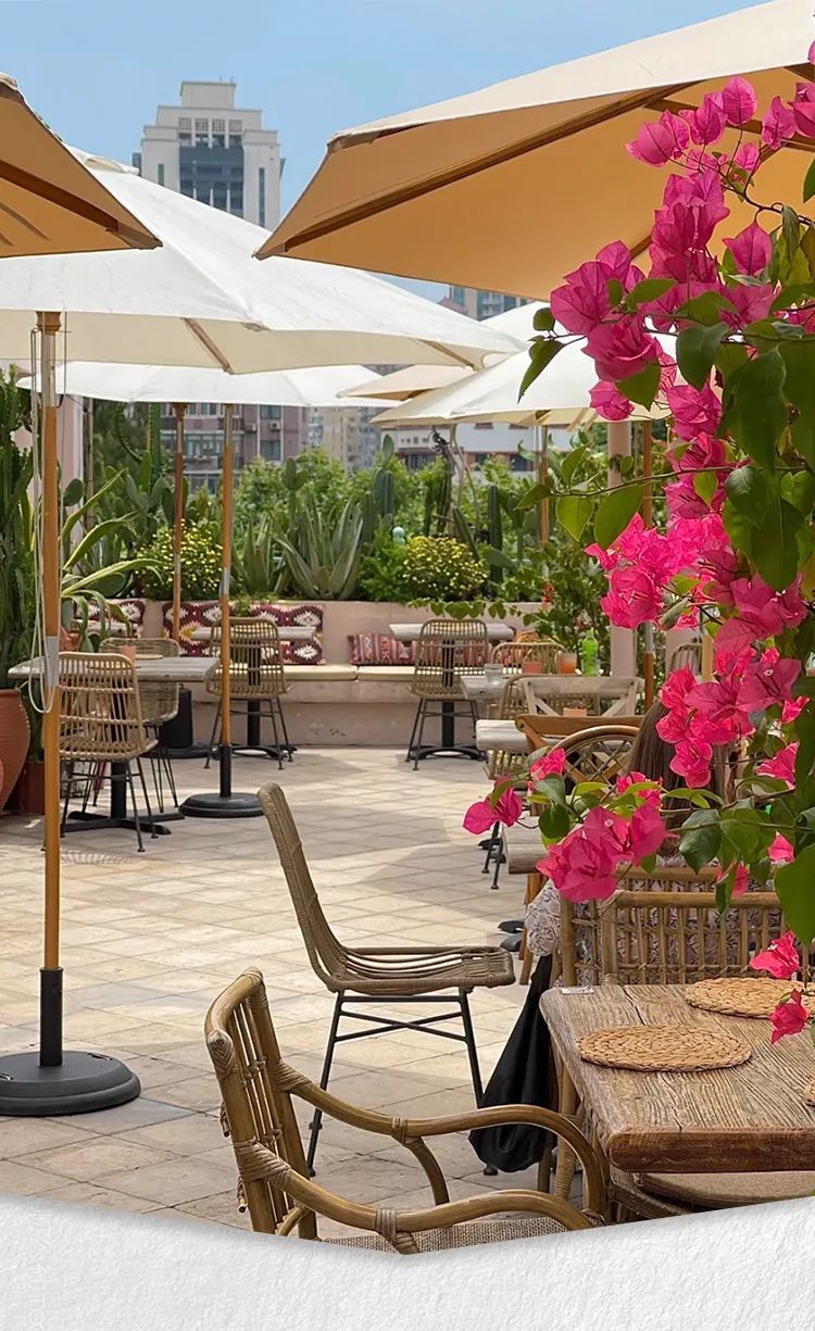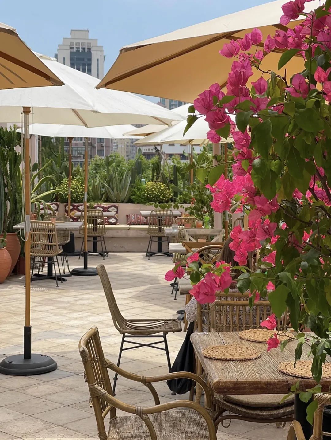 另一家绝美的摩洛哥度假风露台就是BoboLEE Roof Garden了,随处可见的遮阳伞和竹藤椅,环绕四周的木藤架和热带沙漠的多刺植物,每一个角落都散发着野生异域风情的味道。阳光大好时倾洒在整个天台,是出片最佳时间。