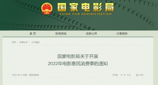 国家电影局关于开展 2022年电影惠民消费季的通知