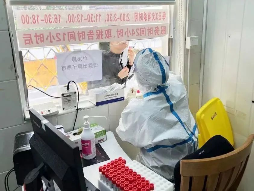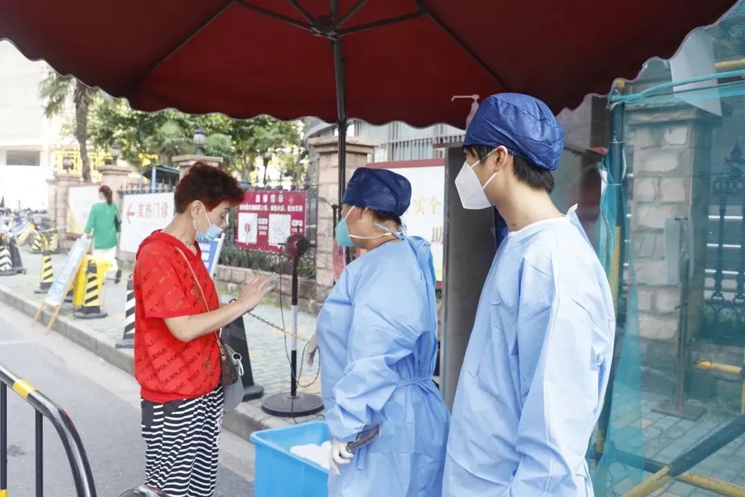 在安图路56号核酸采样点,医务人员迎着酷暑为市民提供24小时采样服务。现场指导核酸码申请、扫码、采样,所有流程一气呵成。他们并没有因为高温天气而放慢节奏,手不停地抬起落下、精准采样。