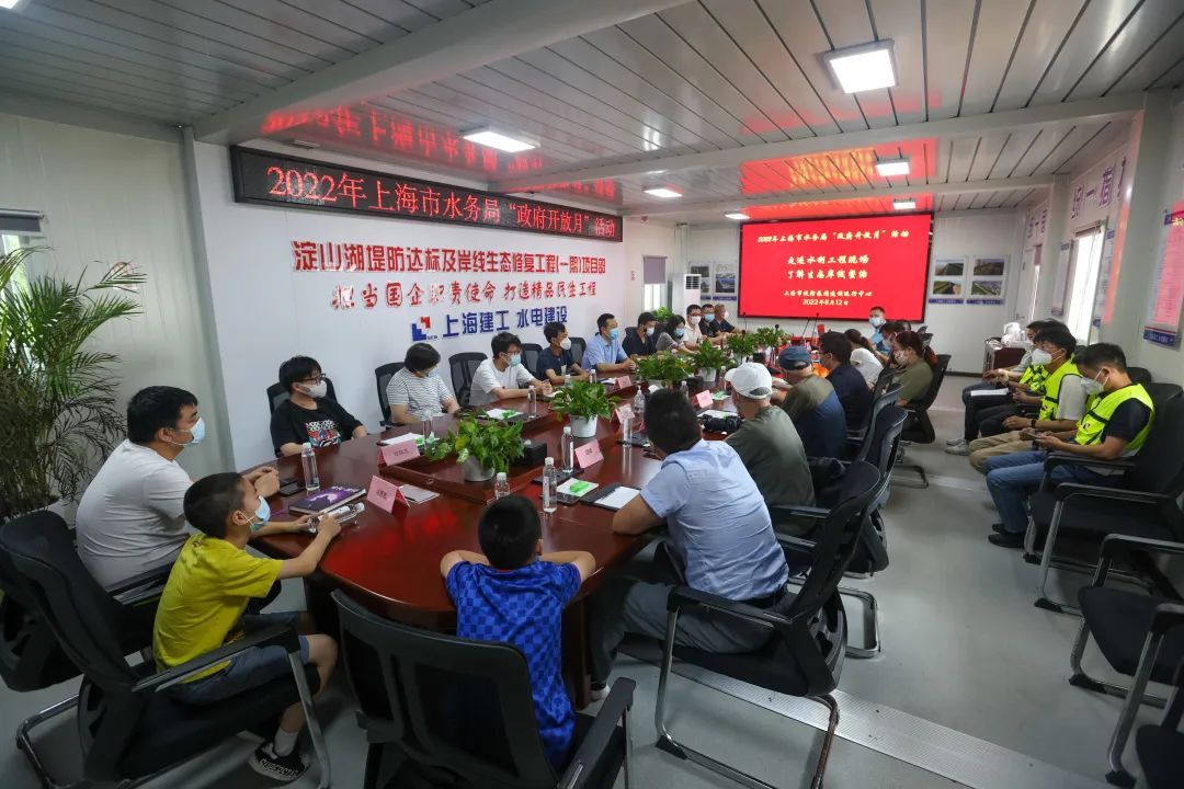 活动还设置了座谈互动环节,在现场介绍和展厅参观之后,市民代表来到了项目部会议室,听取了淀山湖堤防达标及岸线生态修复工程(一期)的总体方案、设计理念、建成效果等相关内容,活动现场通过互动咨询环节,畅通沟通渠道,解答市民代表们关于淀山湖堤防达标及岸线生态修复工程建设理念、建成效果、开放时间等方面的疑问,听取市民代表对淀山湖工程建设的意见和建议。