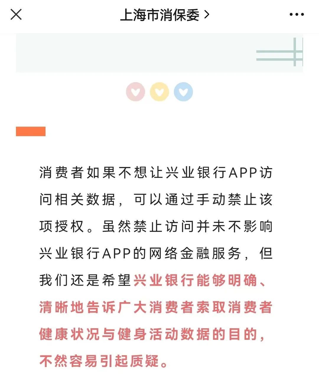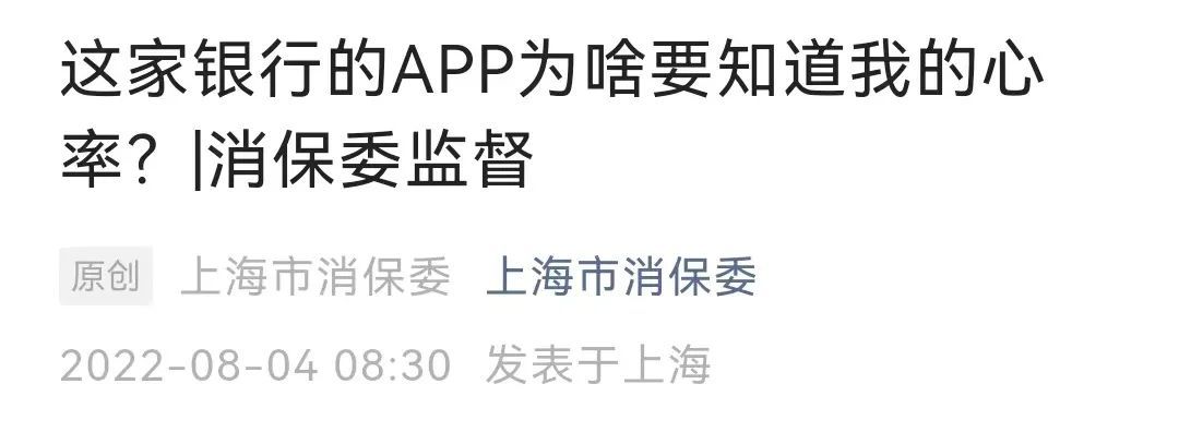 8月4日,上海市消保委发布了《这家银行的APP为啥要要知道我的心率?丨消保委监督》一文。