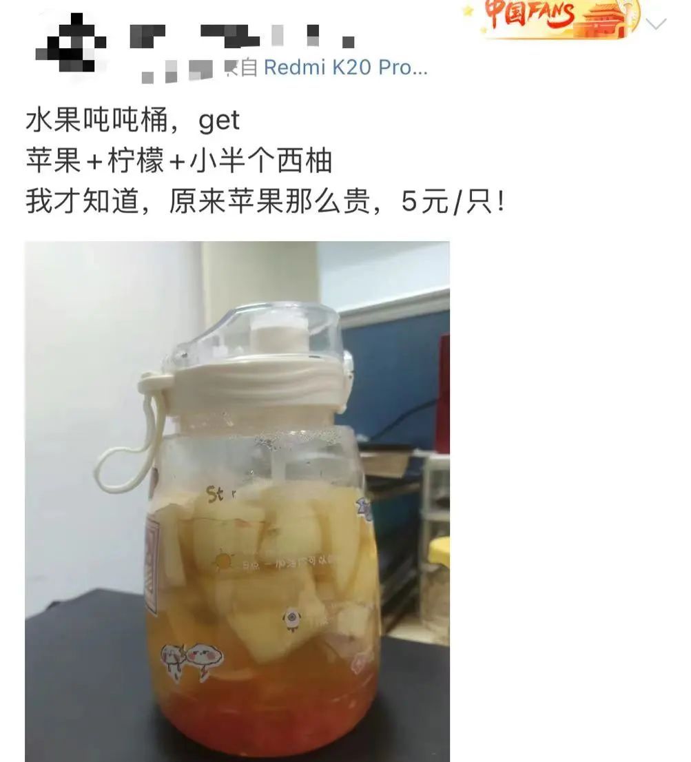 林杰是90后,毕业后一直在杭州工作,是个健身爱好者,已经系统健身4年。他也购买了“吨吨桶”,一只容量2.2升,另一只1.5升,都是耐高温材料,可以直接加入开水,价格200元左右。