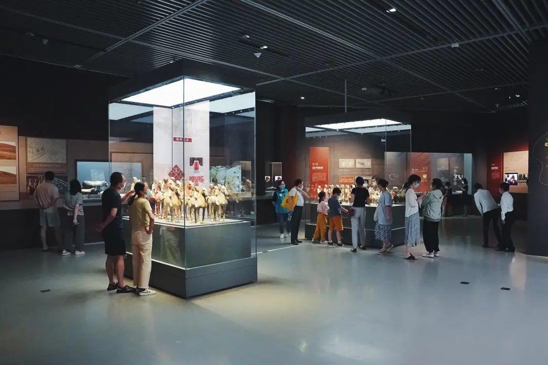 在奉贤博物馆举办的陕西周秦汉唐文物精华展,自7月15号开放参观以来,在沪上掀起了一股观战热潮,开幕至今,已接待观众接近3万人次。目前,9月5日前的参观名额已全部预约满,为了满足市民观展的需求,馆方特地加开了夜场时段。不过,在盛夏时节,室外相对凉快的夜场时段反倒成了“香饽饽”,虽然仅有周五至周日晚间开放夜场,但一经放票,就一抢而空,博物馆的夜晚变得人气火爆,再与上海之鱼景区休闲游玩的客流叠加,让这里的夜晚变得热闹非常。