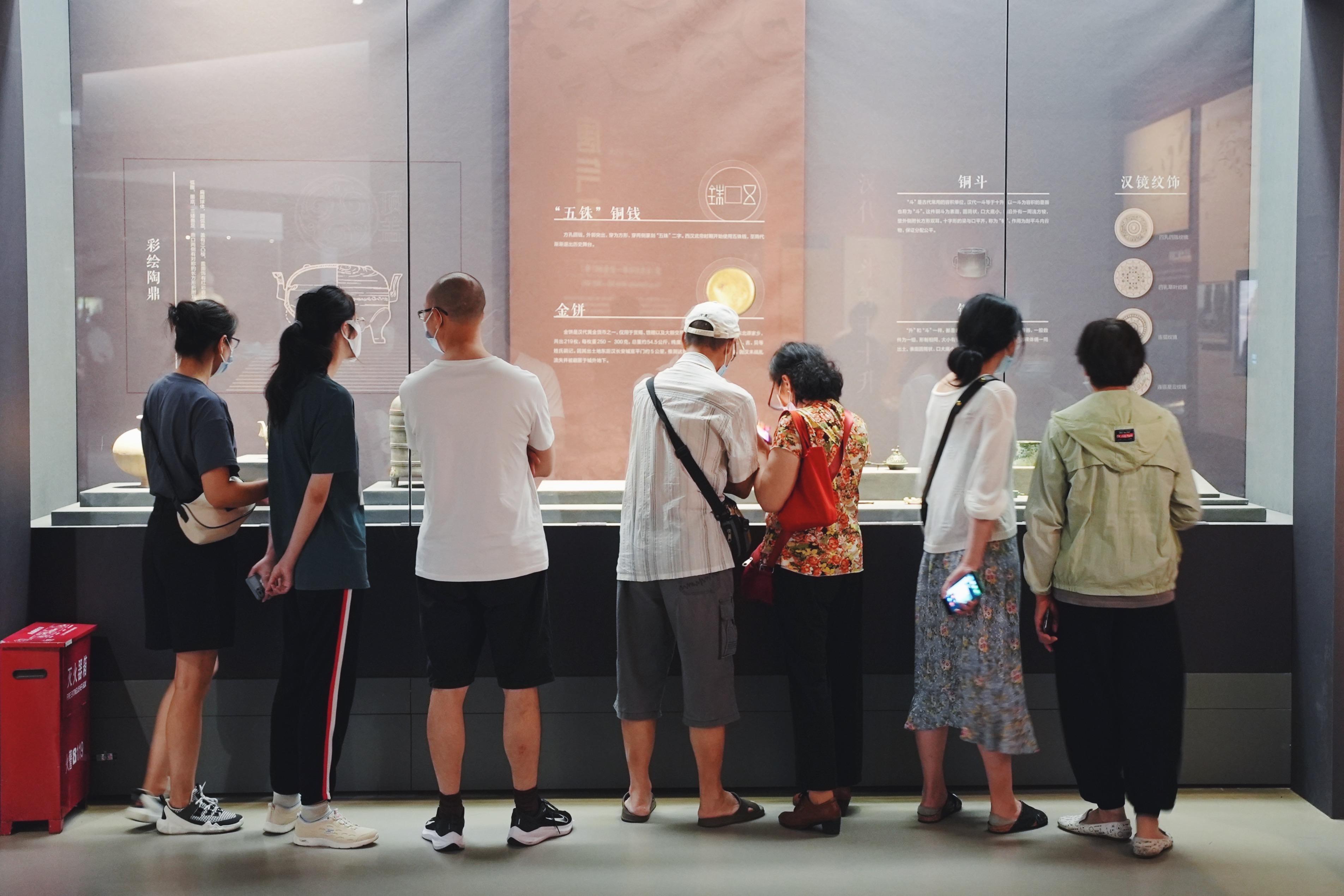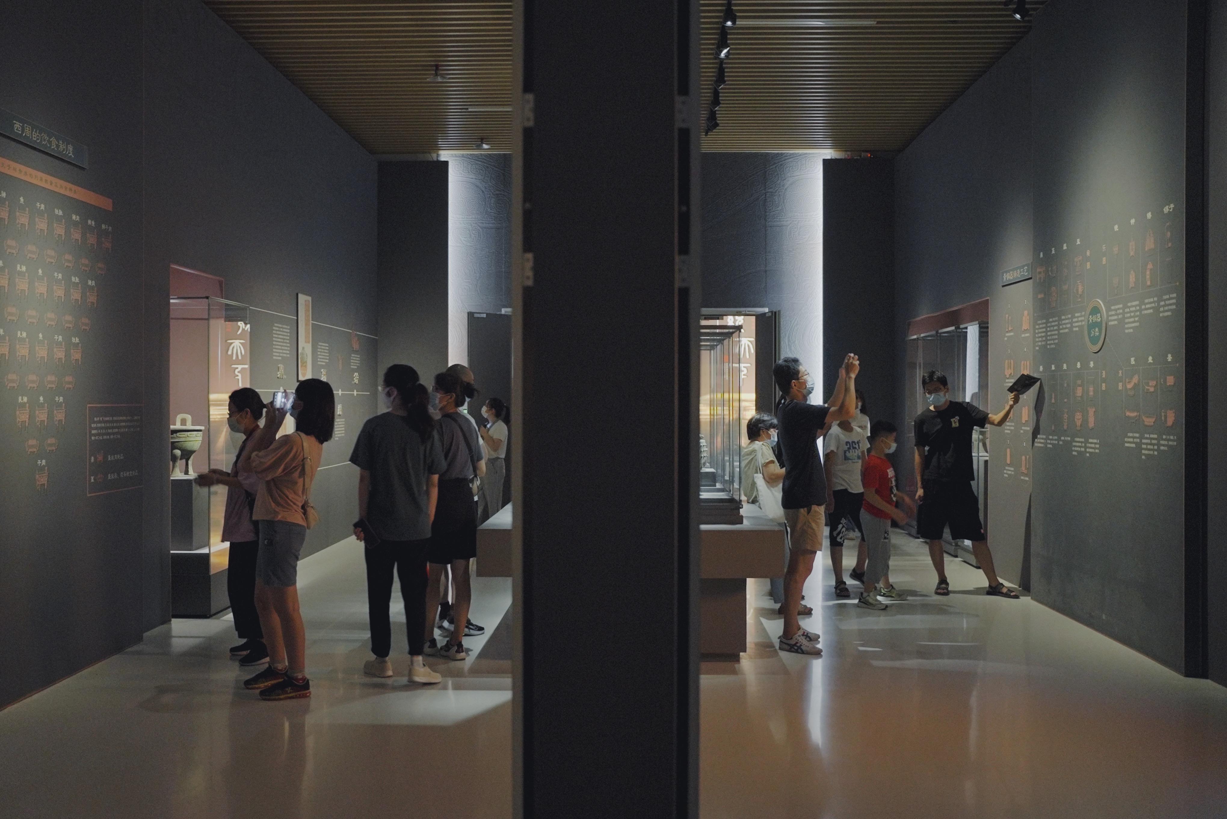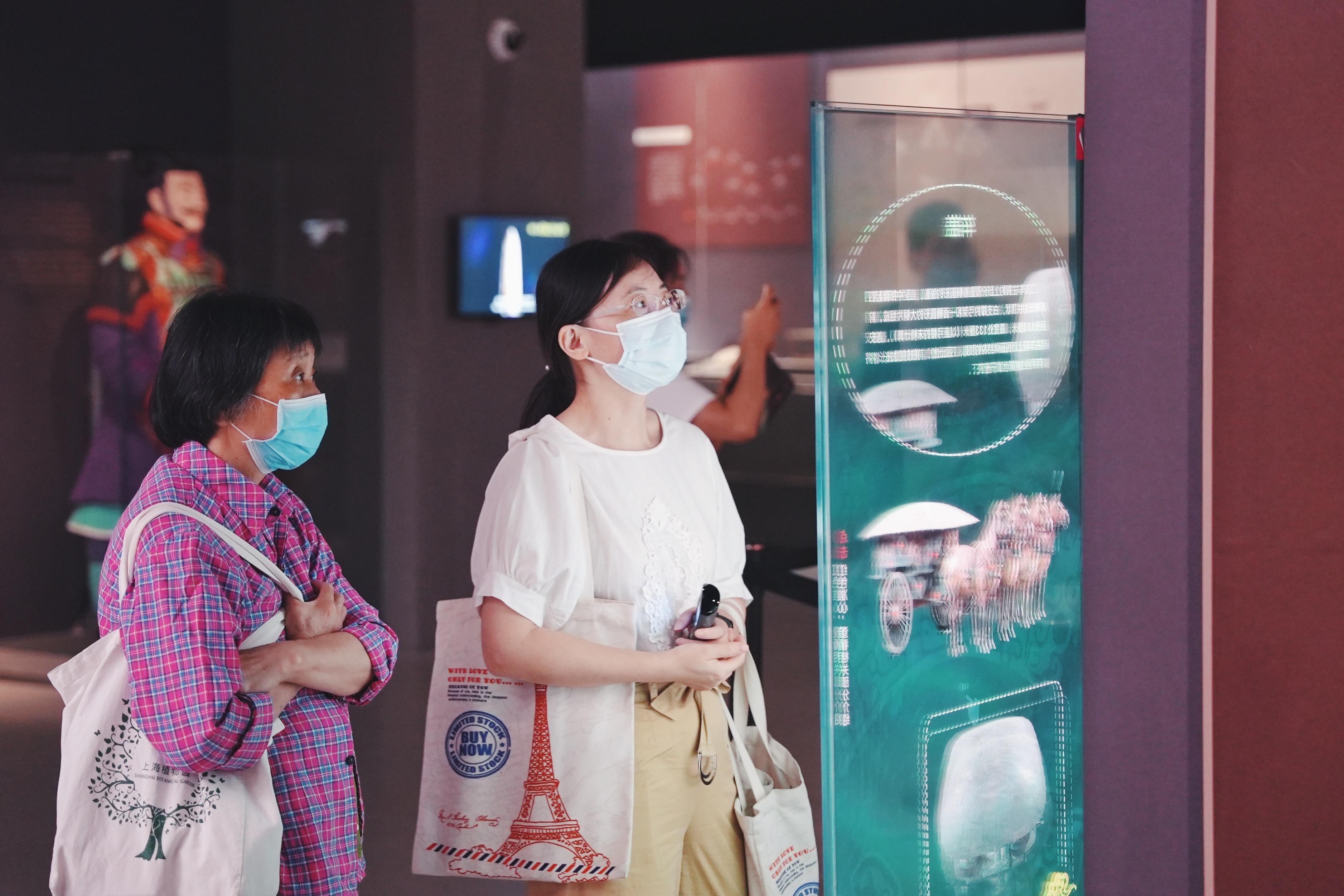 在奉贤博物馆举办的山西周秦汉唐文物精华展,自7月15号开放参观以来,在沪上掀起了一股观战热潮,开幕至今,已接待观众接近3万人次。目前,9月5日前的参观名额已全部预约满,为了满足市民观展的需求,馆方特地加开了夜场时段。不过,在盛夏时节,室外相对凉快的夜场时段反倒成了“香饽饽”,虽然仅有周五至周日晚间开放夜场,但一经放票,就一抢而空,博物馆的夜晚变得人气火爆,再与上海之鱼景区休闲游玩的客流叠加,让这里的夜晚变得热闹非常。