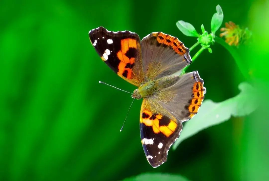 大红蛱蝶,前翅中央有1条红色宽横带。喜访花,吮吸树液等。