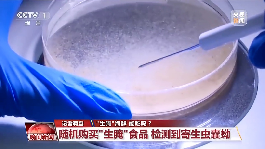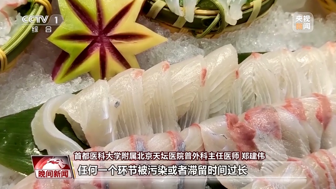 首都医科大学附属北京天坛医院普外科主任医师 郑建伟:生食的话,如果没有注意到质量标准,包括收集、采集、运输、存储和最终厨房加工,这个过程如果任何一个环节被污染或者滞留时间过长,或者温度不达标,就有细菌滋生。在腌制过程中也尽可能采取一些比如高浓度酒,浸泡时间偏长,而且要全部浸泡进去。