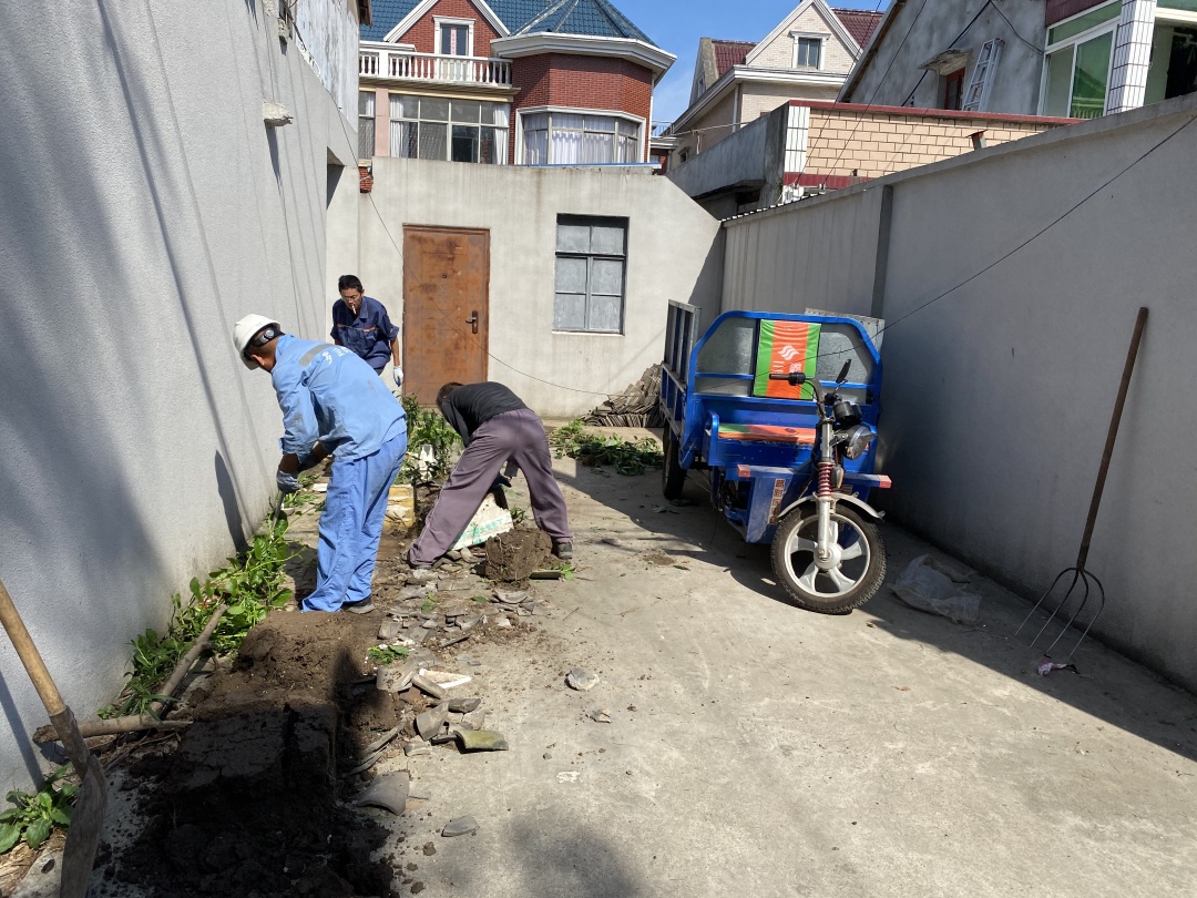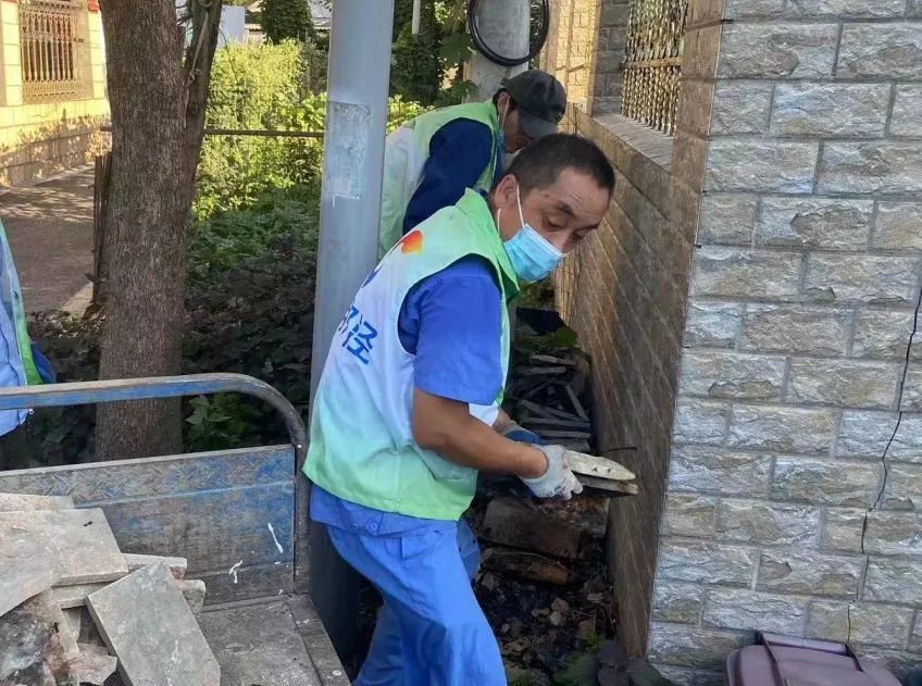有些村民家里建房之后,留下了一些建筑材料和垃圾,堆放在角落里。在建房村民的积极配合下,保洁队员将零散堆放的建筑材料清运走了,极大地改善了庭院的环境。