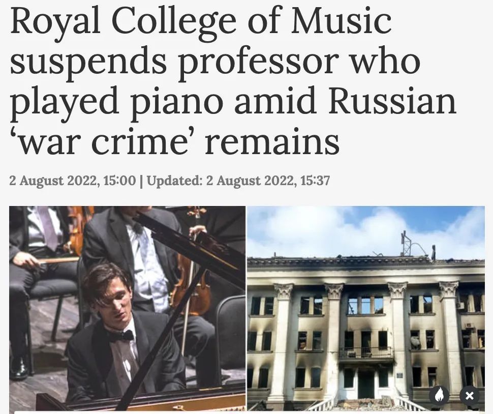 英国皇家音乐学院(Royal College of Music)暂停了著名钢琴家亚历山大·罗曼诺夫斯基(Alexander Romanovsky)的职务,此前俄罗斯国家媒体拍摄了他在乌克兰马里乌波尔市被毁的顿涅茨克地区戏剧剧院前表演的画面。