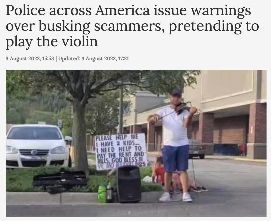 近日,美国各地的警方发布了新的全国性警告:在过去两年里,关于骗子假装街头艺人拉小提琴的案件席卷了整个美国。