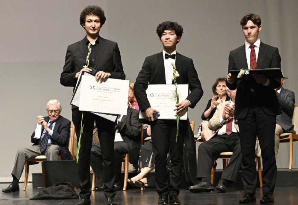 西班牙时间8月5日,第20届桑坦德国际钢琴比赛(Santander International Piano Competition)落幕,最终杰登·伊齐克-朱尔科(Jaeden Izik-Dzurko,右一)荣获一等奖,来自中国的臧小橹获二等奖,马塞尔·塔多科罗(Marcel Tadokoro)获三等奖。