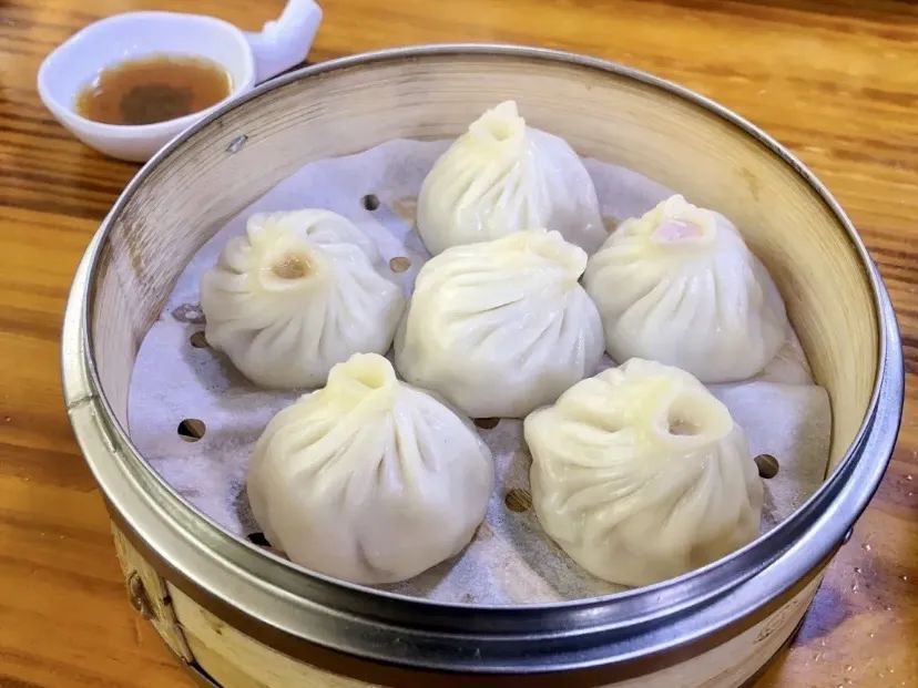 这里的早餐“花头”很多,小笼包、烧卖、粢饭糕、春卷、油条、馄饨……应有尽有。最受欢迎的莫过于鲜肉小笼包,一屉6个,仅售10元一份。咬出一个小洞,嗦嗦汁水,再吃一口包子,鲜掉眉毛。