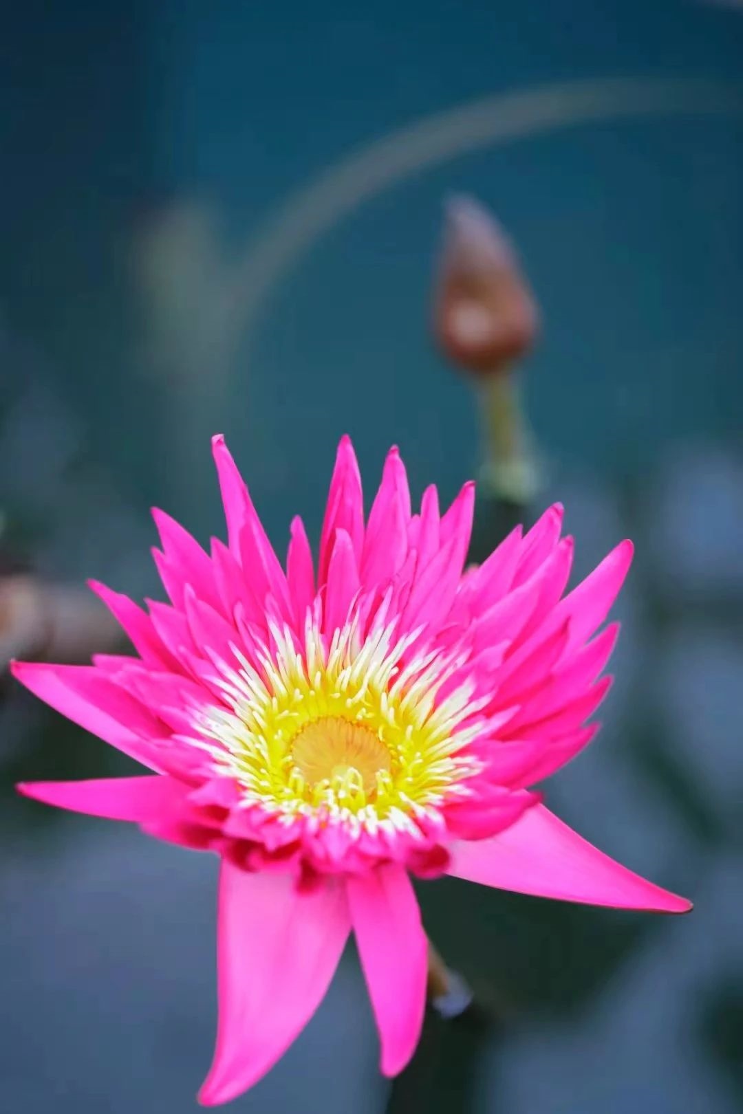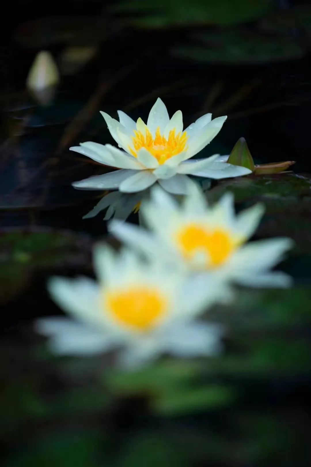 拍摄睡莲时,可以利用水面的倒影,形成巧妙的构图,增强照片的立体感。