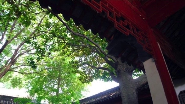 百年古树泛新绿,枝上雏鸟忙觅食。顺流而行,能看见两棵500年树龄的银杏树伫立在此,见证了百年的风雨,依旧枝繁叶茂。银杏树下,便是清代学者钱大昕族中的宗祠。