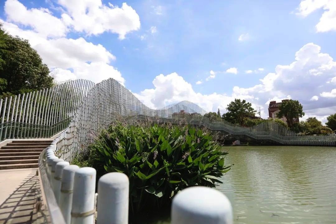 从小横沥出发,来到外冈新市镇南北滨水景观长廊。水韵彩虹桥、水上风车、临水栈桥、亲水平台等景观沿河而设,两岸青草连碧,荷花在微风中摇曳。