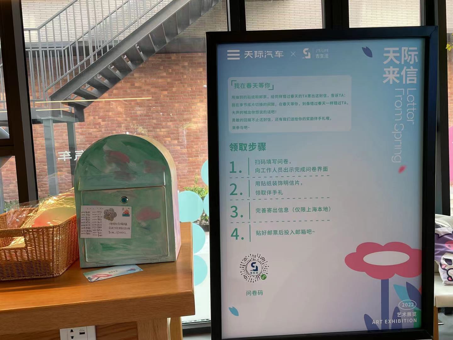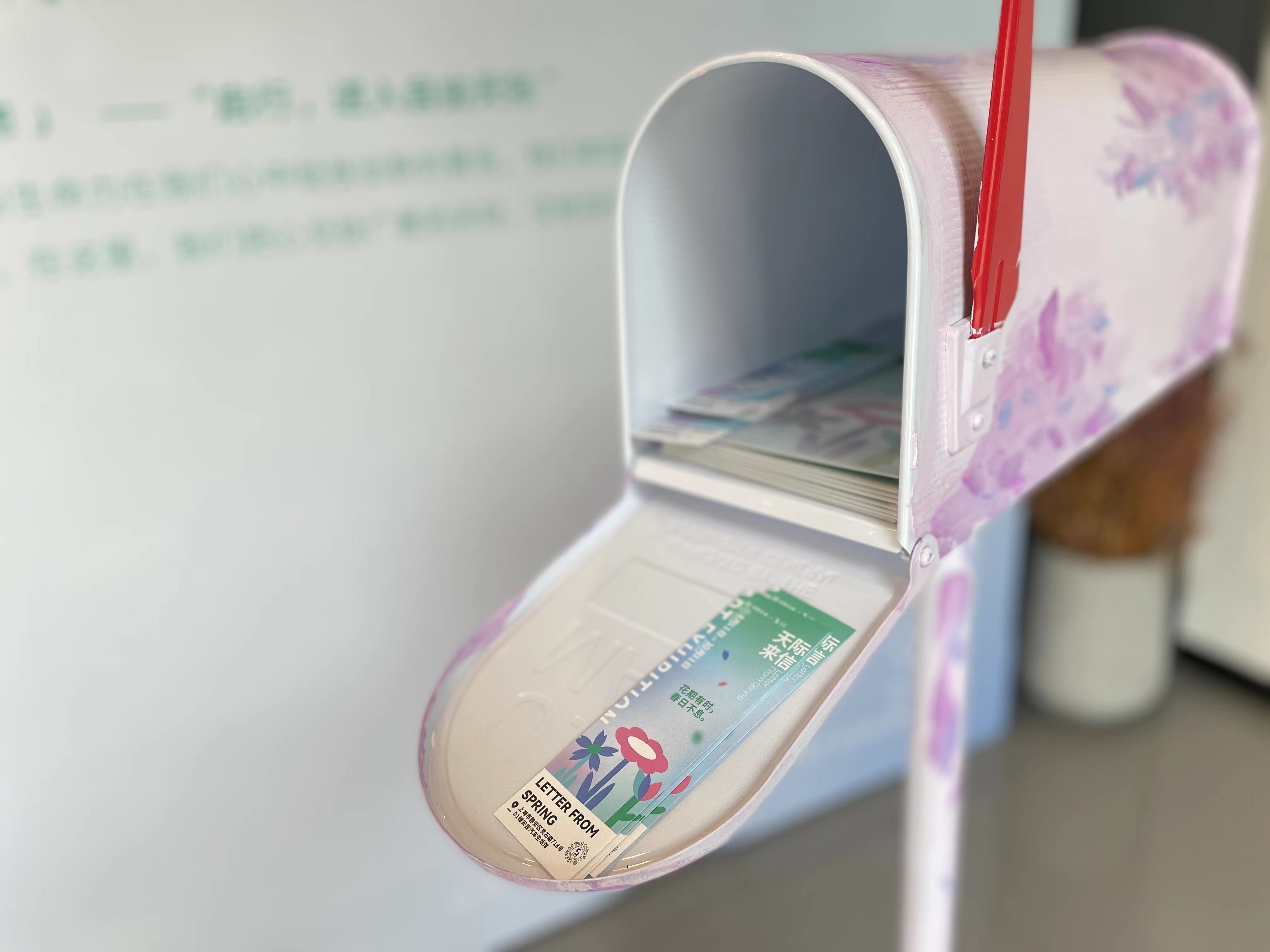 进入展览后,在天际邮局空间,参观者可以从邮箱中抽取一封来自春天的信,并在每个场景中的邮箱内抽取贴纸对明信片进行装饰。