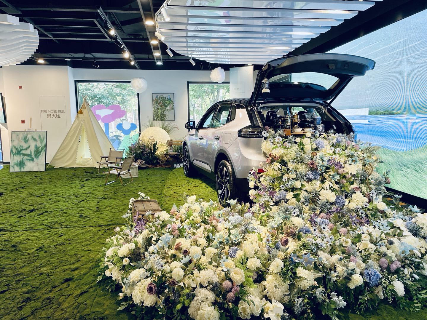 汽车生活馆摇身一变成新零售艺术策展空间,通过艺术空间布景,不仅营造出充满活力的春日氛围,也带来沉浸式的汽车零售场景体验。在天际营地空间精心搭设的户外露营场景内,一款新能源汽车就吸引了不少参观者的注意,纷纷上车体验。