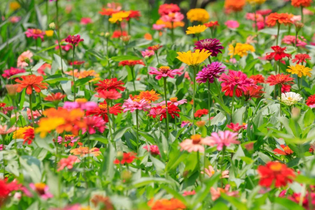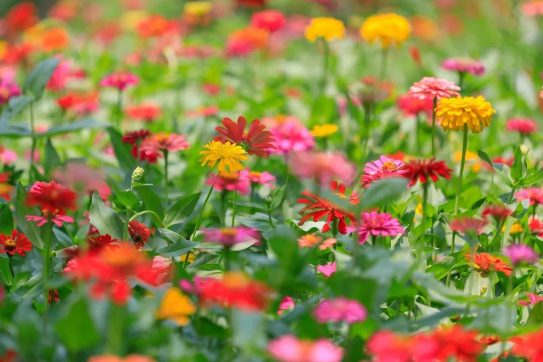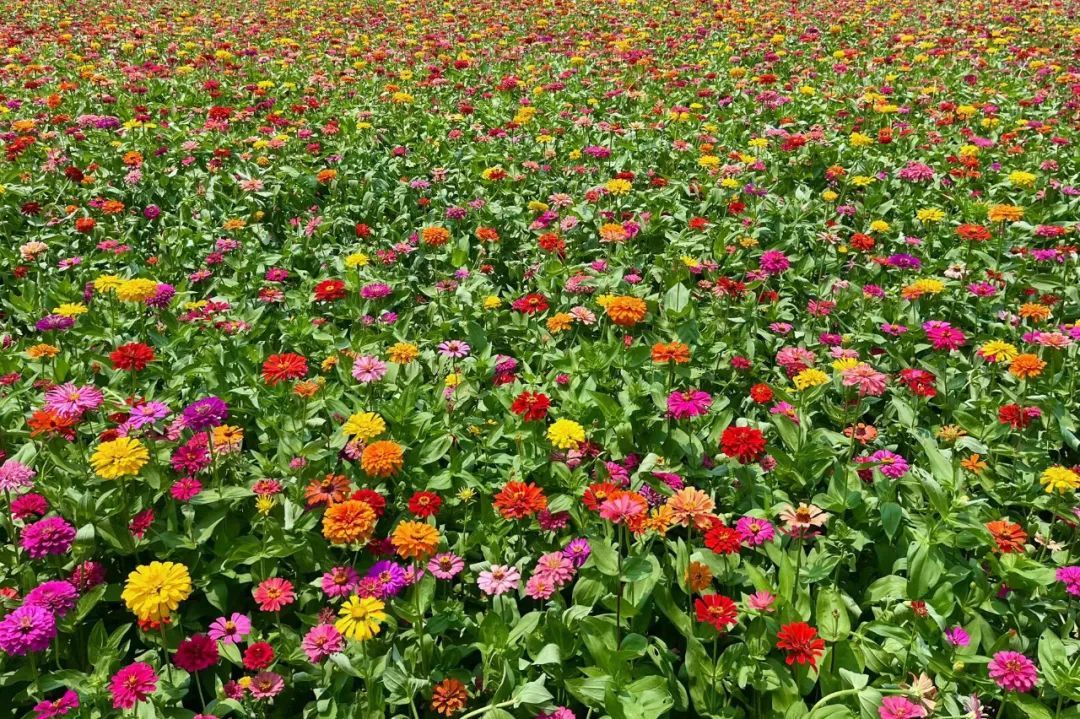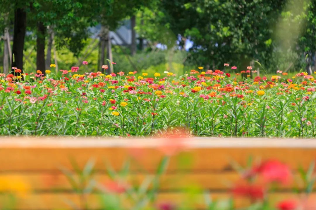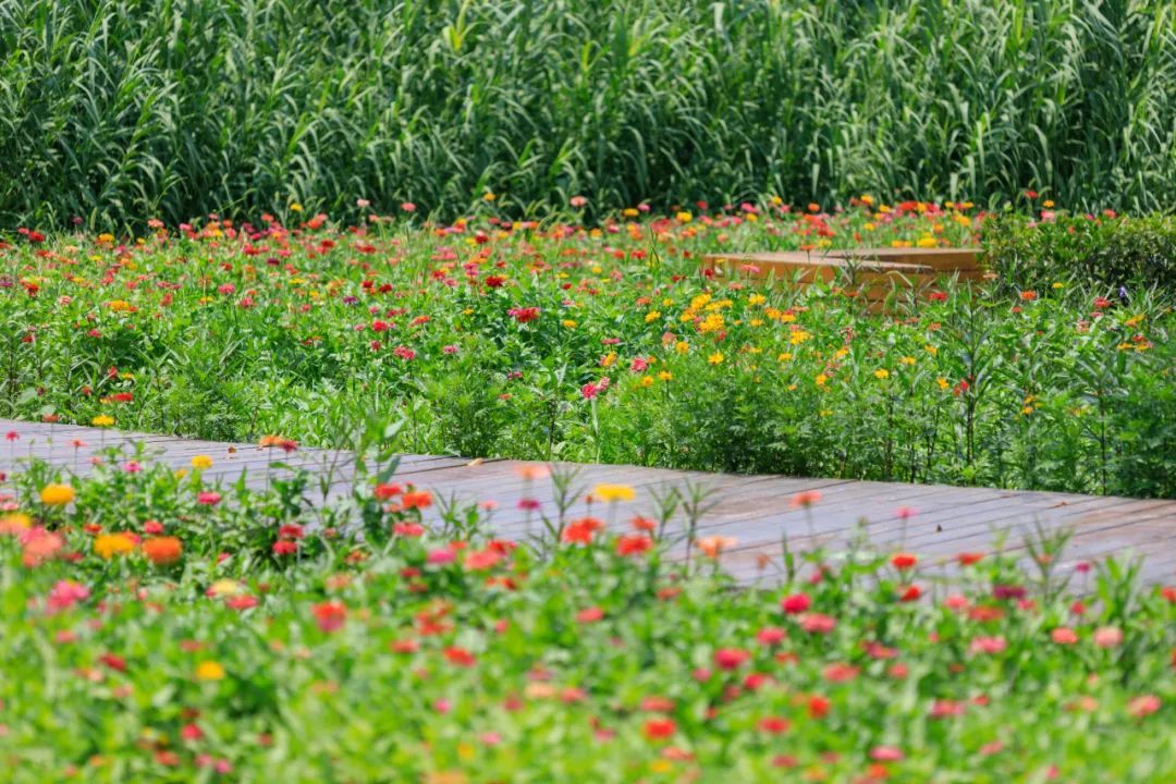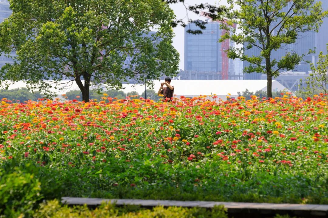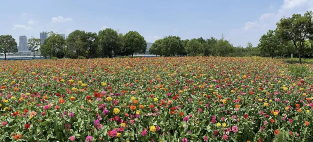 东岸滨江一大片百日草花海