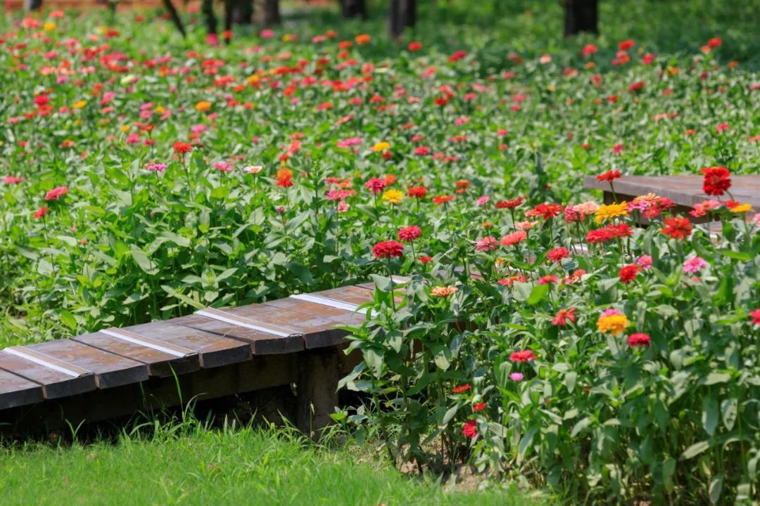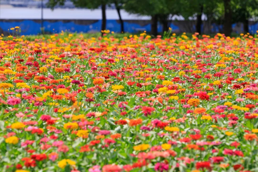 东岸滨江百日草缤纷盛放