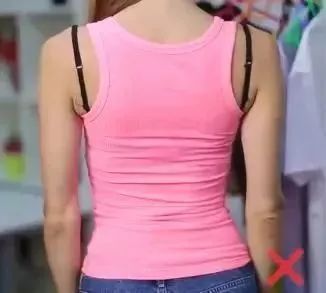 夏天穿无袖背心最尬尴的是内衣的肩带会漏出来,只需将后背两条肩带别一根回形针,就能避免这种尴尬啦~