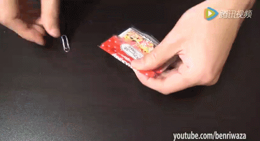 平时吃不完的零食,将开口收紧,用回形针别住,能够有效的防止零食变潮。