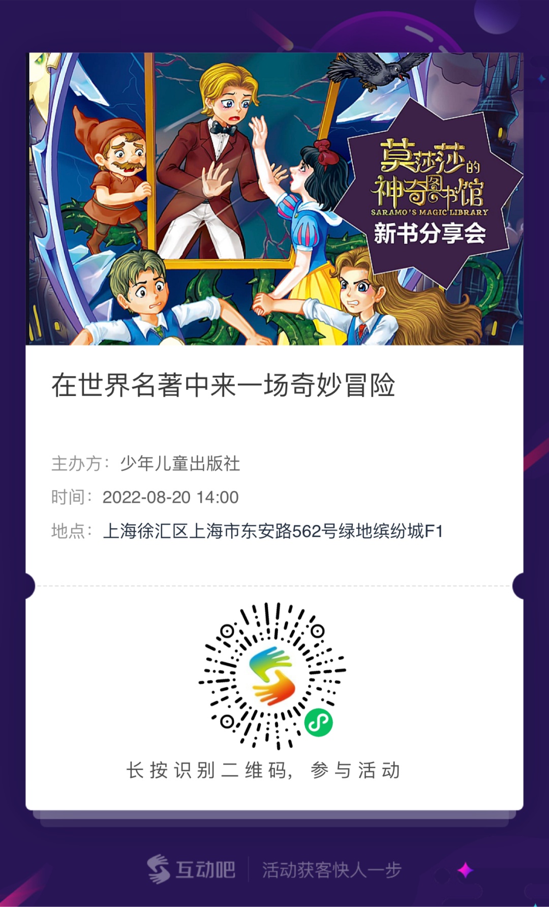 8月20日(周六)14:00,少年儿童出版社携手钟书阁和《莫莎莎的神奇图书馆》作者阮小芳将在先锋书屋(钟书阁徐汇店)与读者现场亲密互动——