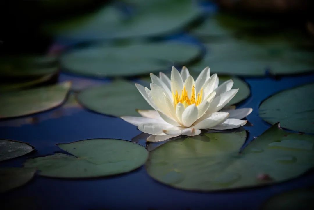 拍摄时可以选择一些动态物体当作陪体,例如花瓣上滑落的水滴,水上游过的动物,落脚休息的昆虫等。这样可以增加画面的灵动感,让人感觉画面“动”起来了。