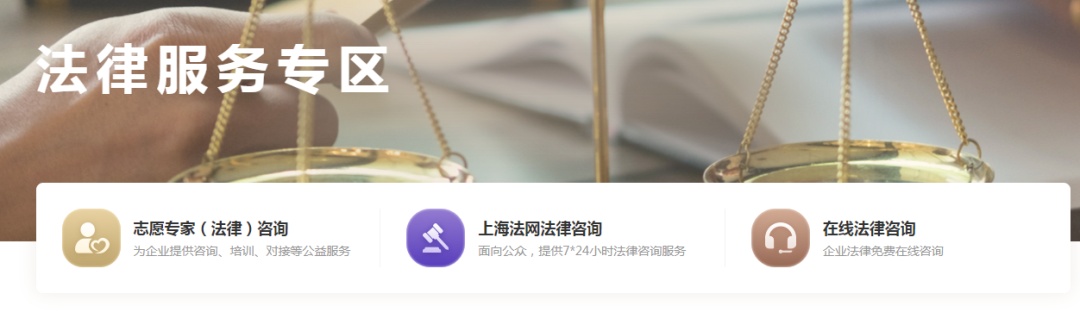 “在线咨询”包含志愿专家(法律)咨询、上海法网法律咨询、在线法律咨询(企业法律),均免费向中小企业开放,针对企业相关的法律问题,可以在页面直接点击输入问题与法律专家进行一对一即时咨询。