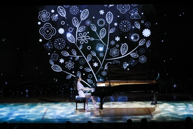 本次音乐会中,曲目不仅囊括了如肖邦《降E大调夜曲》、德彪西《月光》、舒曼《梦幻曲》等古典曲目,如久石让《人生旋转木马》、法佐·赛伊《莫扎特爵士幻想曲》、马克斯· 里希特《写在天空中》等当代经典作品;另有中国代表性民歌作品《彩云追月》。古典与流行的跨界,不仅是体现在曲目的串联上,更是运用了LED屏等布景技术,一同打造古典与时尚交融的风格,综合展现吉娜的多面性。