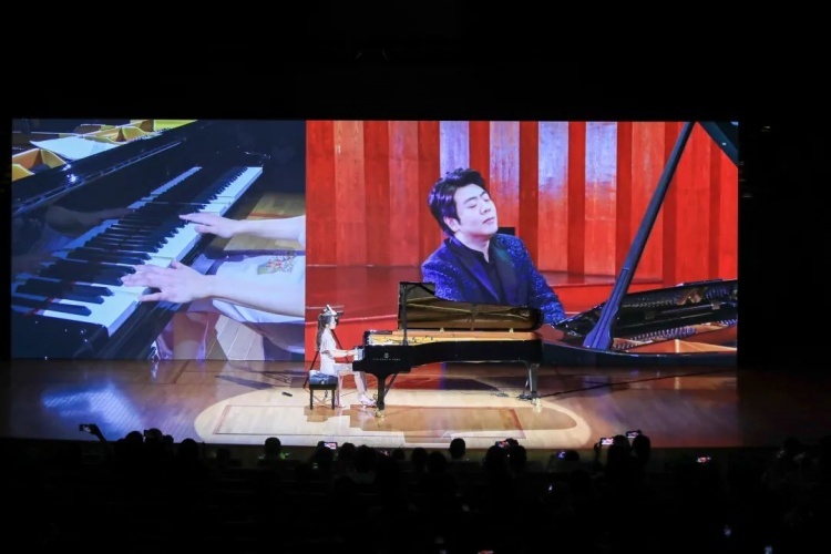 8月14日晚,身着旗袍的青年钢琴家吉娜·爱丽丝,走进上海东方艺术中心音乐厅,在钢琴前款款落座,演绎其在上海举办的首次个人钢琴独奏音乐会。作为演出临近尾声“彩蛋”,正在欧洲巡演中的郎朗通过LED屏幕“云端”亮相,实现了夫妻二人在东艺的“四手联弹”。