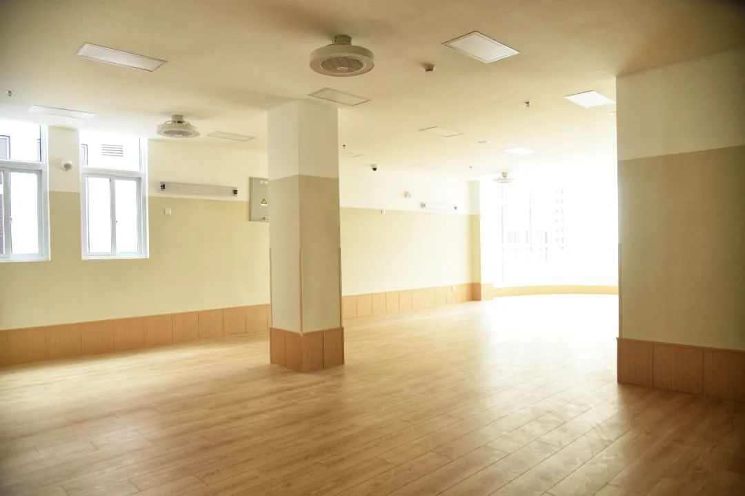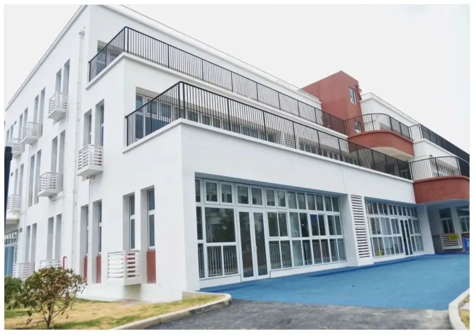 幼儿园主体呈东西狭长形,中间设有庭院,所有教室均朝南,采光优秀、通风良好。每间教室配有活动室、卧室、卫生间、消毒室、衣帽间,功能齐全,易于管理。此外,幼儿园还配有室内活动教室、多功能厅、室外塑胶场地和室外草坪。