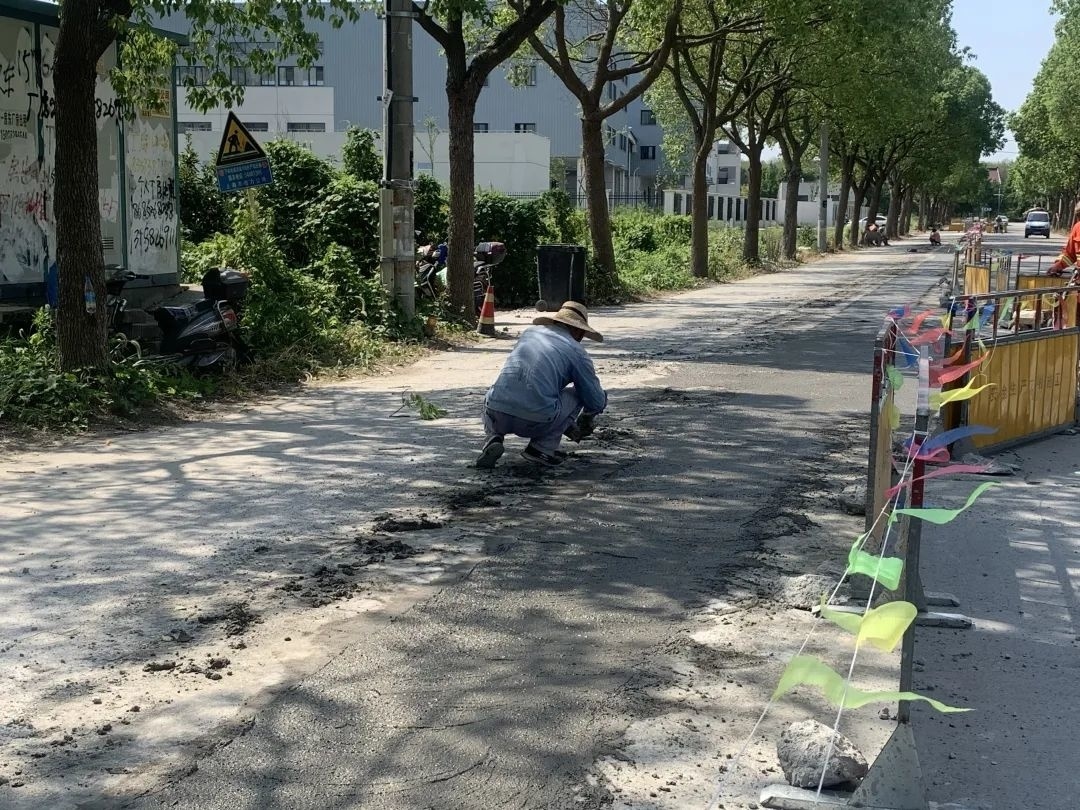 随后,记者联系了相关部门了解情况,据工作人员介绍,由于龙跃村农民集中居住点天然气管道铺设,施工人员对该路段进行开挖,直至7月中旬,才开始道路修复,后由于高温天气,施工暂缓。近期,已经逐渐恢复施工,但考虑到天气过于炎热,为防止工作人员中暑,每天只施工半天。