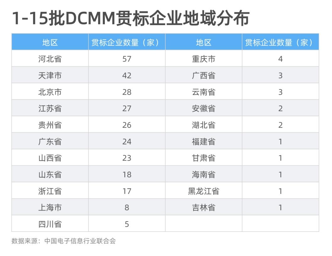 日前,中国电子信息行业联合会网站公布了第15批DCMM(数据管理能力成熟度)等级证书名单。截至目前,全国共有294家贯标企业,分布在21个省(自治区、直辖市)中,其中山东有18家,位居全国第8位。