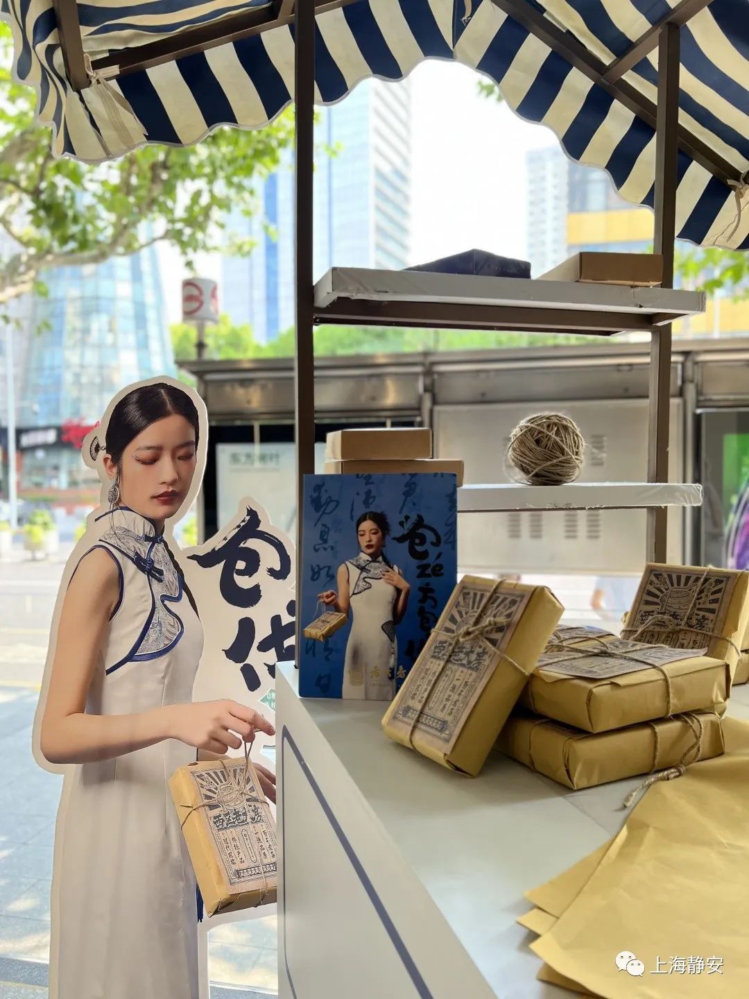 此外,记者在现场看到,在西区老大房(900食品城店)门店前,点心师傅正在一辆摆满牛皮纸、麻绳的“小摊车”旁,熟练地为顾客进行包装。而这辆造型别致的“小摊车”,也吸引了来往路人的注意。