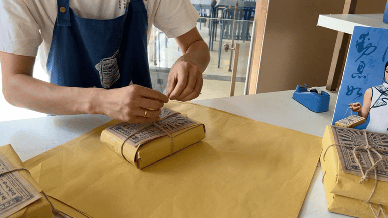 顾客凡是购买一盒六只装的鲜肉月饼,点心师傅便可以为其将月饼打包成“方包”,开启纸包点心新浪潮。