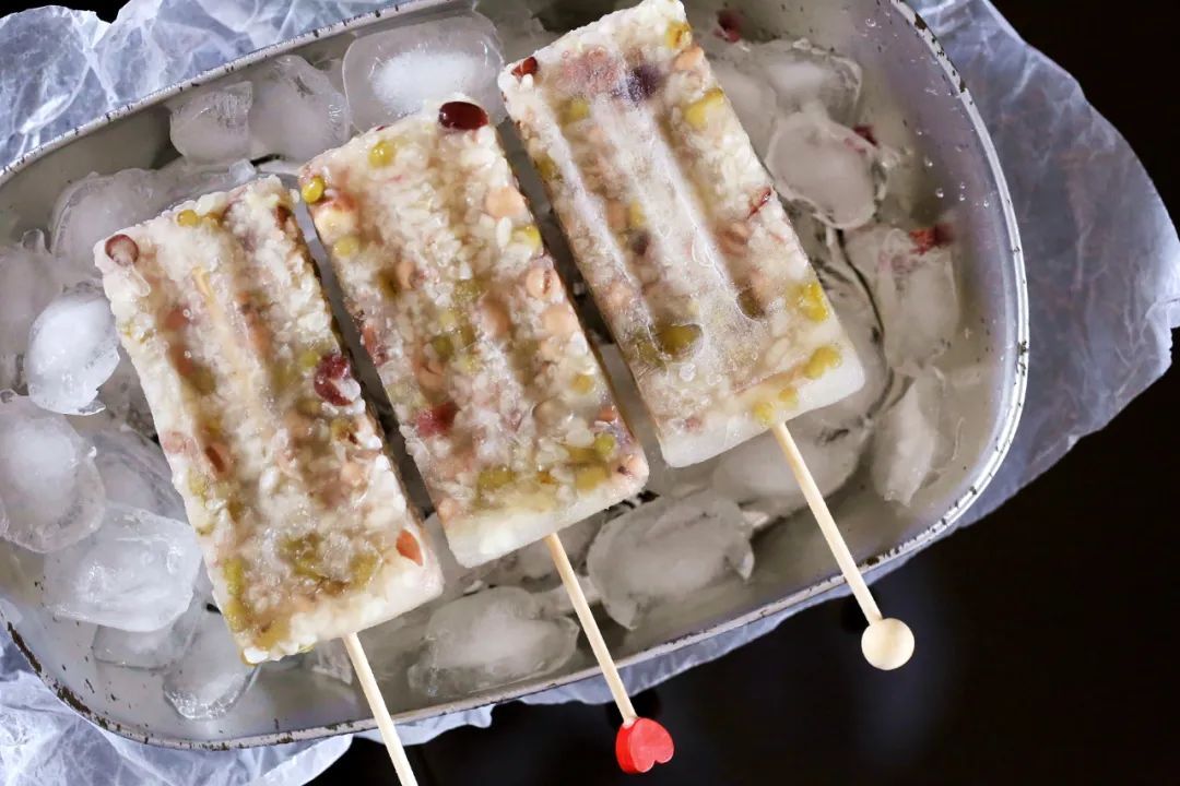 5. 冷冻完成的冰棍在室温条件下摆放5分钟,或将模具浸泡清水1分钟,稍微晃动冰棍即可取出。