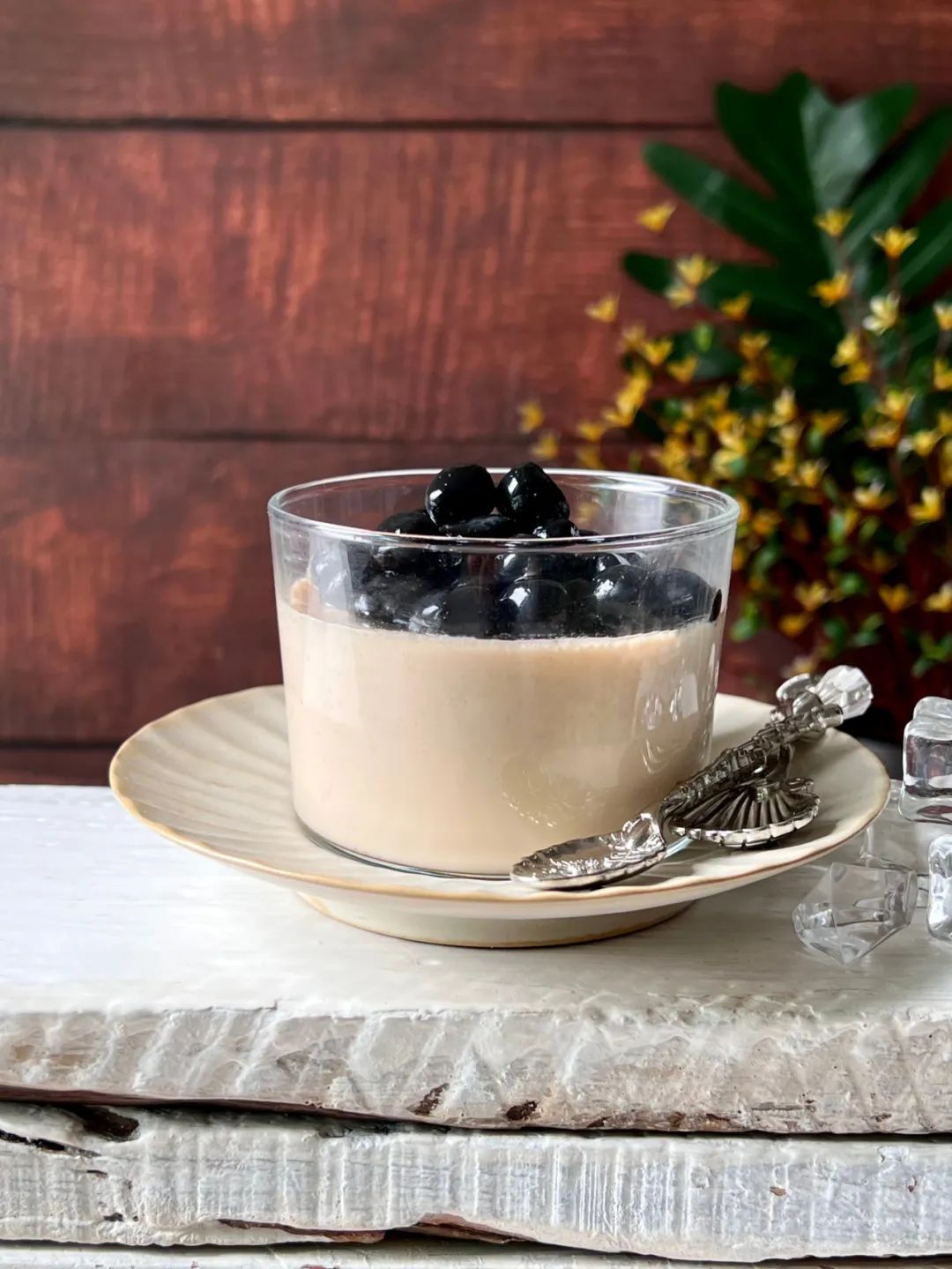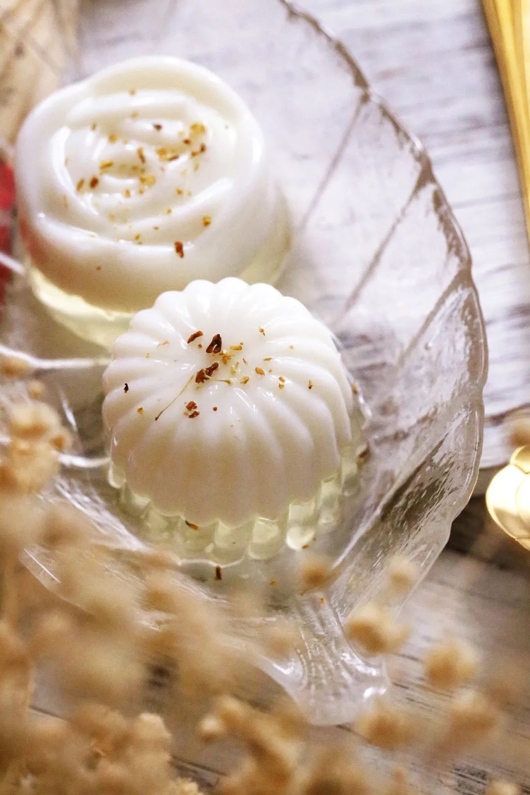 5.完全凝固后的凉糕从冷藏室取出,倒扣后脱模。食用前可用干桂花装饰,喜甜也可另添加果糖增强口感。