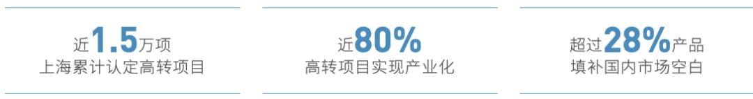 高转新政着力创新导向、精准施策、改革增效。截至2021年底,上海累计认定高转项目近1.5万项,落实专项资金超110亿元,落户人才3000余人,通过成果转化类中高级职称评审1万余人。近80%高转项目实现产业化,超过28%产品填补国内市场空白,充分显示了高转项目在支持重点产业领域科技自立自强,提升产业链、供应链自主可控能力方面的重大贡献。
