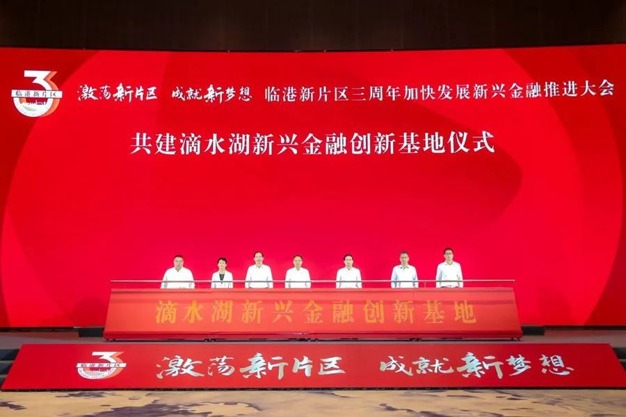会上举行了金融管理部门共建滴水湖新兴金融创新基地仪式。临港新片区管委会会同人民银行上海总部、上海银保监局、上海证监局、证监会上海专员办、上海市地方金融监管局共建滴水湖新兴金融创新基地。