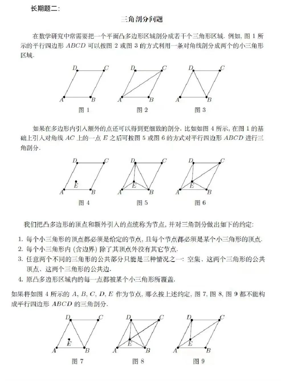 这项活动的全称为数学学术展评活动,今年是第一届,活动分为两个阶段进行——开放性解答阶段、现场性展评阶段。展评活动的题目又分为长期题与即时题。而长期题在活动报名时,就已经公开——