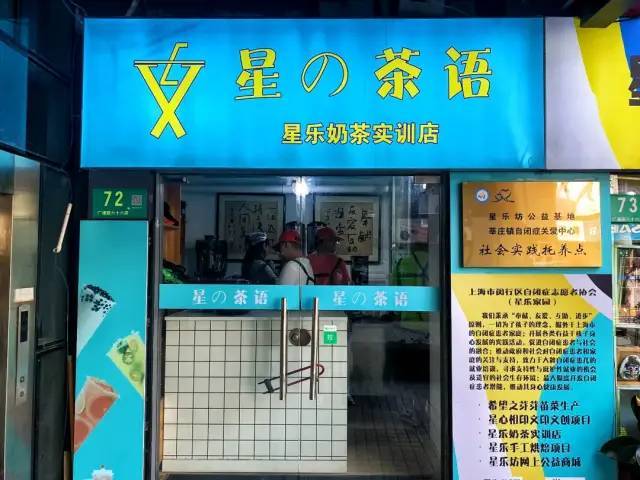 在莘庄镇广通路六十六弄绿地科技岛下沉式广场上,有一家店面不起眼、但意义非同寻常的奶茶店,名叫“星之茶语”。