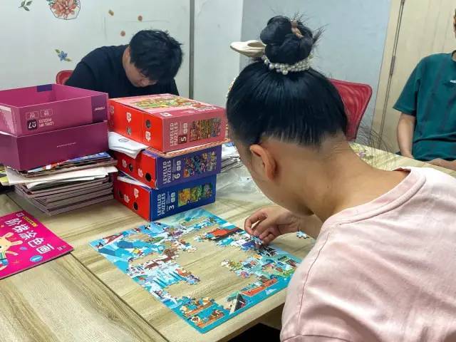 正值暑假,患有自闭症的孩子不能无人看管,协会开设星乐莘园日托班。在不大的房间里,孩子们有的在拼图,有的在看书,有的在画画,模样很是专注。“一般来说,自闭症儿童很难长时间集中注意力,但这是从与人交际的层面来说的,就对于一件事情的专注而言,他们往往表现得比常人更有耐心,也更有想象力。”陈浩说。