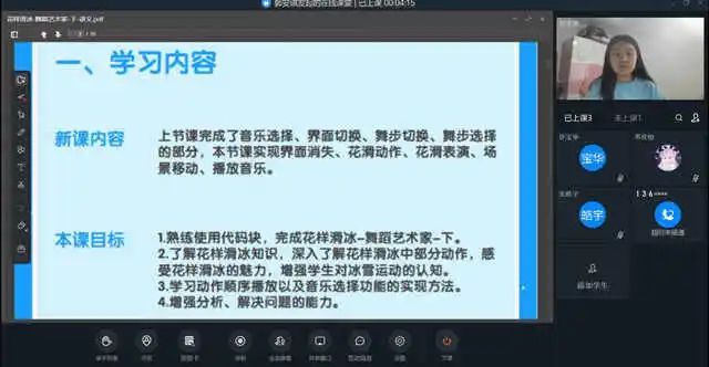 来自上海建桥学院计算机科学与技术的郭安琪同学通过团区委的暑期项目,一边做着防疫志愿者,一边当起了“云老师”。她精心设计了Scratch编程课程,准备了冰壶挑战赛、滑雪挑战赛和花样滑冰挑战赛3个主题。她的编程课针对零基础青少年开设,内容难易适中,可以很好地激发青少年对图形化编程的热爱和动手能力。目前已开设了2个班次,每周六和周日各有一节课,服务了12名社区孩子。