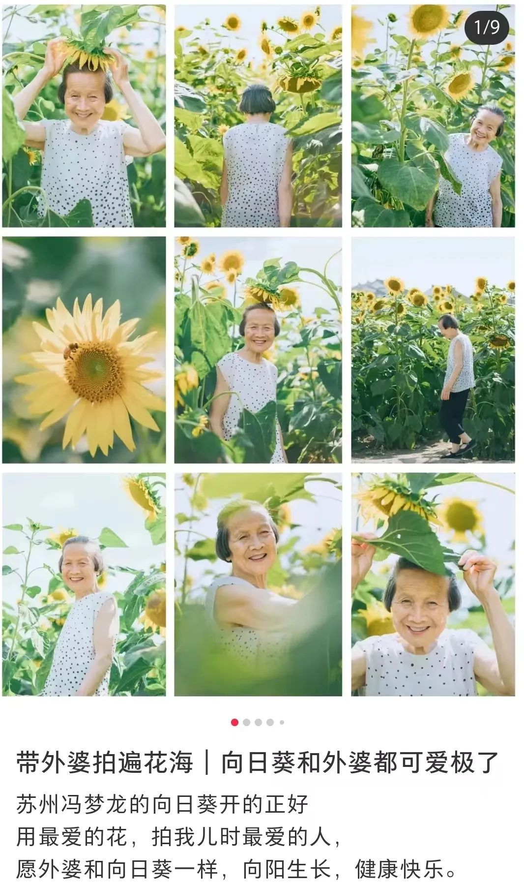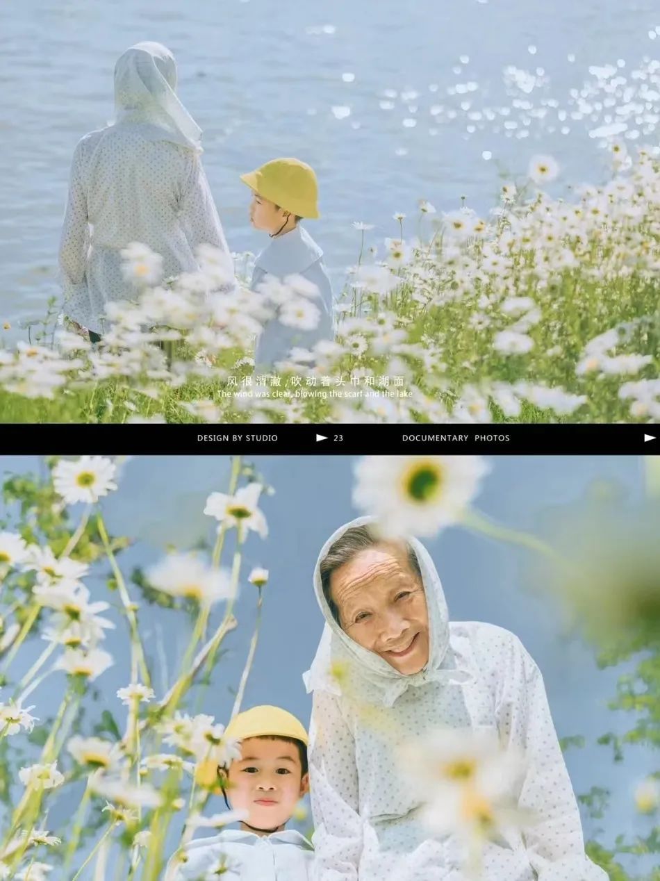 身材瘦小的外婆走进“画”里,成了更美的风景:或裹着头巾,或戴着草帽;一身素净,一脸温柔;绽放着阳光温淡、岁月静好的笑容。